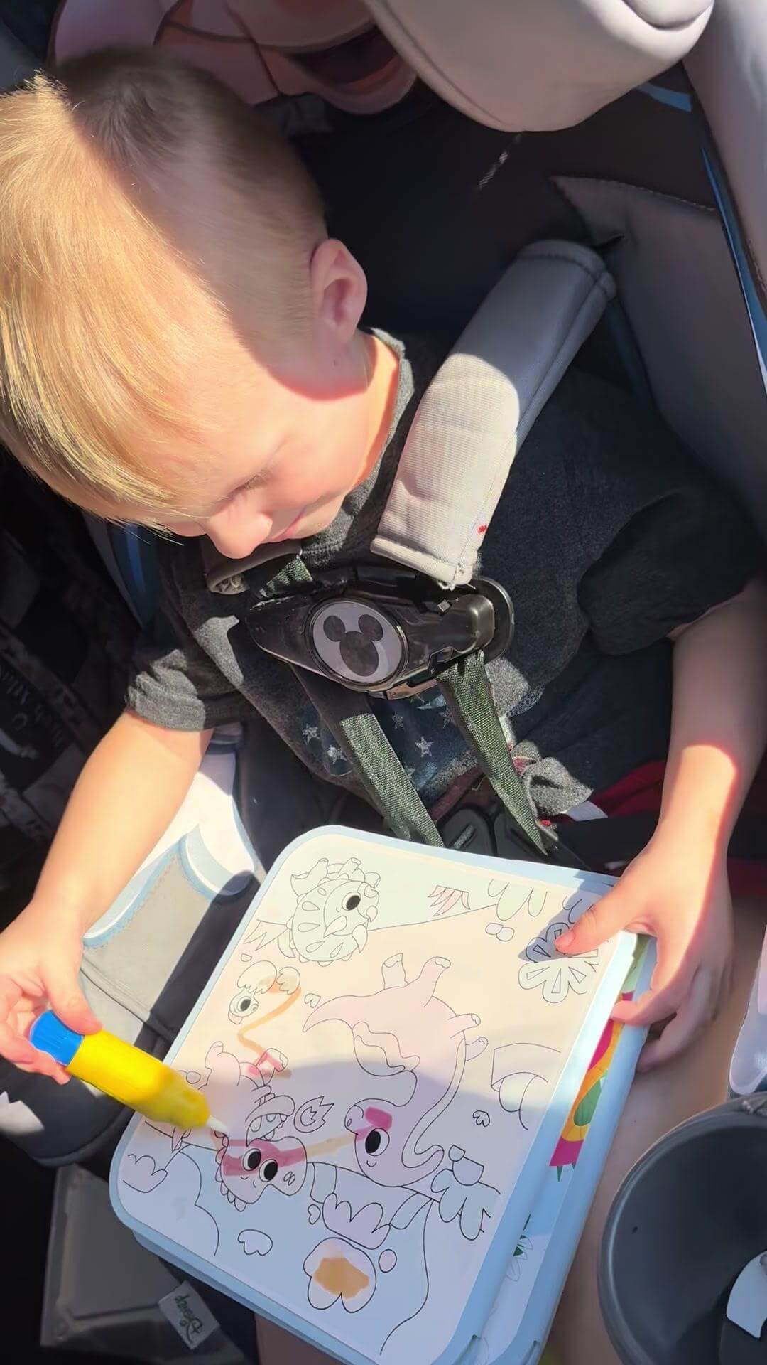 kept my 2 kids busy the whole car ride. no fighting no crying no mess. best purchase ever made for drives